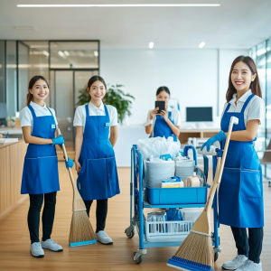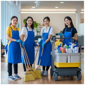 - Vệ sinh và làm sạch cầu thang, cửa sổ, làm bóng cửa kính